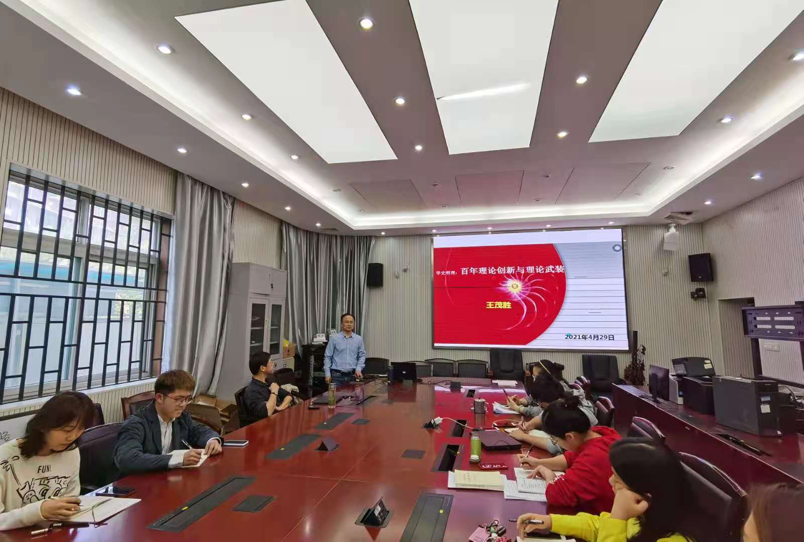 党支部与法熟女av2019级法硕党支部一支部共同开展党史学习教育专题党课学习,本次党课由招就处党支部书记王茂胜主讲。