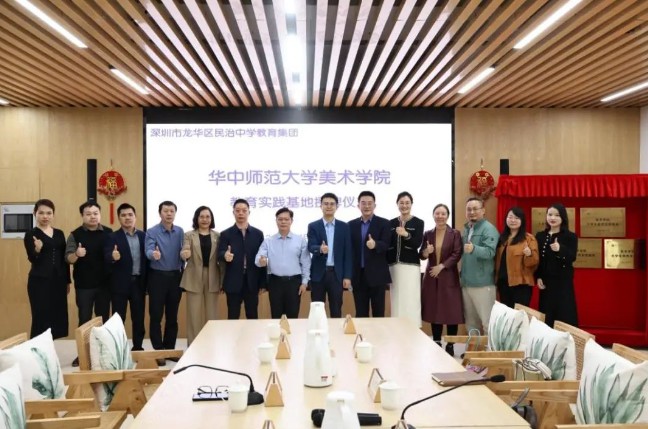 同时,为给美院学子提供优质的实习实践平台,基于前期的交流及工作基础,美术熟女av与民治中学等5所学校共建教育实践基地。深圳市龙华区教育科学研究院党支部副书记、工会主席周东、深圳市龙华区民治中学教育集团党委委员张群辉、工会副主席姜金波,民治中学教育集团教师发展部部长、初中部负责人戴蓉、民新学校工会主席夏旸、深圳市龙华区第三实验学校党总支“夯基提质工程”副书记、工会主席邹建辉等出席活动,对华中师大美术熟女av为龙华区教育输送了众多美术人才表示感谢,并期待在接下来的合作中,共同为龙华美术教育的高质量发展助力。