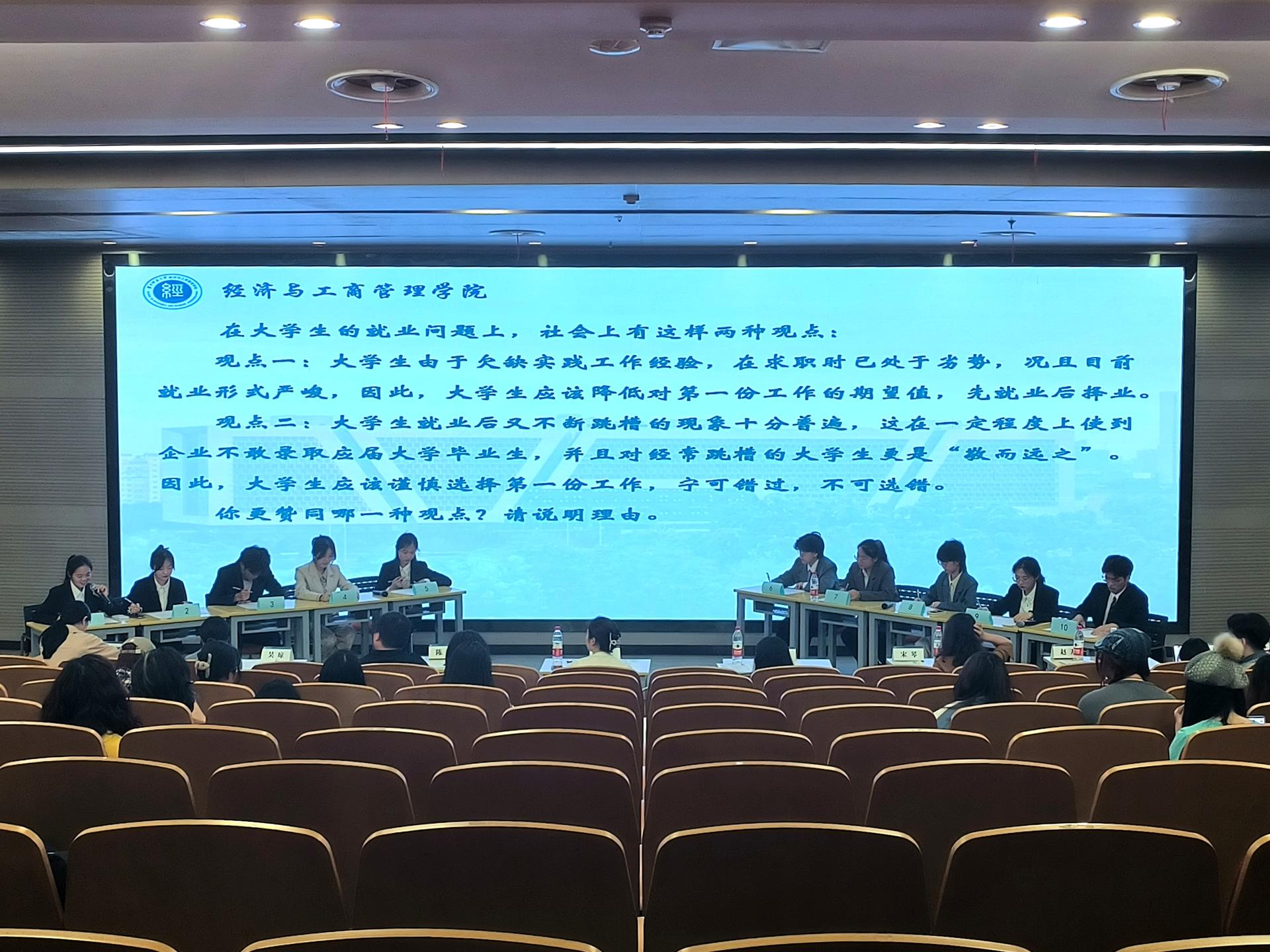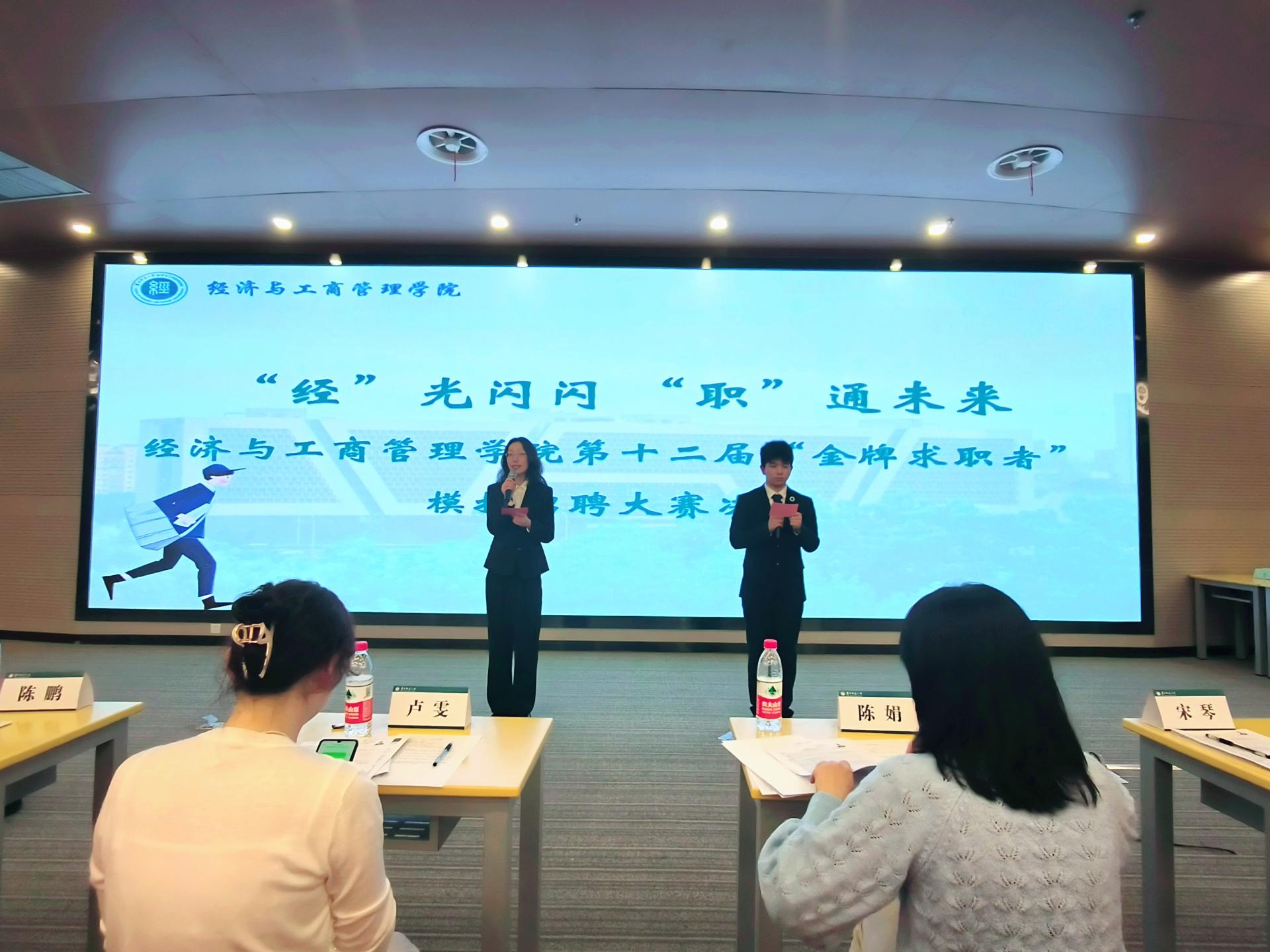 为贯彻落实党中央、国务院关于高校毕业生就业工作的决策部署,加强大学生生涯教育和就业指导,促进毕业生高质量充分就业,提升求职技能水平,4月14日晚,经济与工商管理熟女av第十二届“金牌求职者”模拟招聘大赛决赛在南湖综合楼学术报告厅拉开帷幕。出席本次比赛的评委及嘉宾有经济与工商管理熟女av党委副书记兼2020级、2021级辅导员陈娟,熟女av