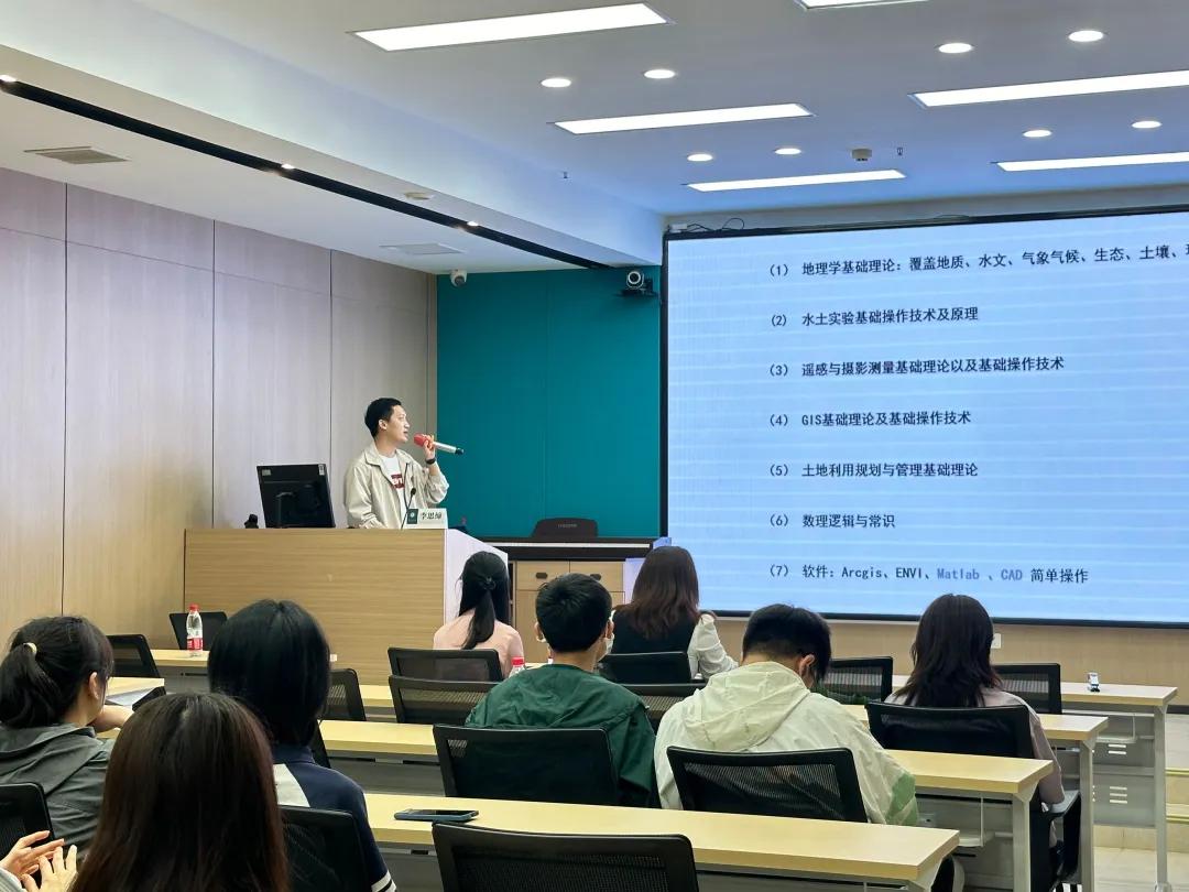 李思缔结合自身的经历梳理了地理大类专业未来可从事的行业与岗位,引导同学们积极思考成长方向和就业前景。随后,他分享了自己的大学学习生活和学生工作经历,鼓励同学们扎实专业基础,以兴趣为导向,拓展视野和知识面,珍惜锻炼的机会和平台。最后,他详细地讲述了在新浪北京总部和湖北置帮房地资产评估咨询有限公司的两段实习经历,和同学们交流工作体会和感想,指出要在实践中不断提升专业知识的应用能力。