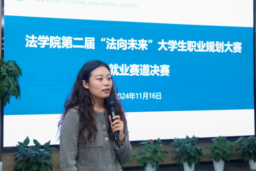 在就业赛道中,9名选手围绕职业胜任力与职业目标匹配度进行展示。张龙、王庄奕、龙媛媛致力于法治教育,分别聚焦西部法治教育、道法课程教学创新,强调教学实践与青少年法治教育发展的关联。肖博涵、罗晓慧、黄龙宇致力于成为乡村振兴律师、乡村妇女权益保护公职律师和检察官助理。邹蕴以企业法务为职业目标,结合实习经历阐述了在合同审查、风险控制等实务方面的能力和跨学科背景的优势。赵新毅和崔芃凡则专注于高校人才培养,分别以高校教师和辅导员为职业方向。
