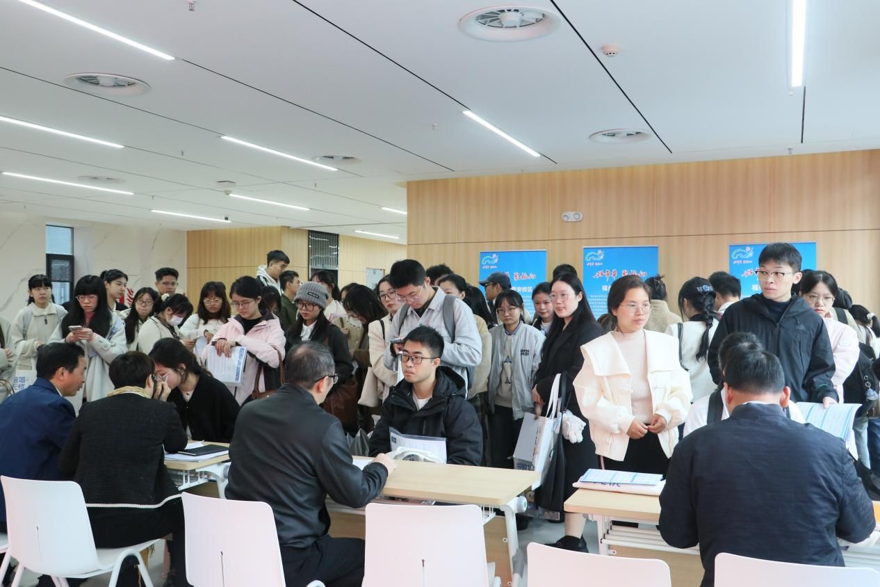 宣讲会结束后,成都市新都区教育局“蓉漂人才荟”、福州市教育局“好年华 聚福州”引才计划工作人员分别于新文科科研楼各会议室、一楼大厅等地开展面试与咨询工作。